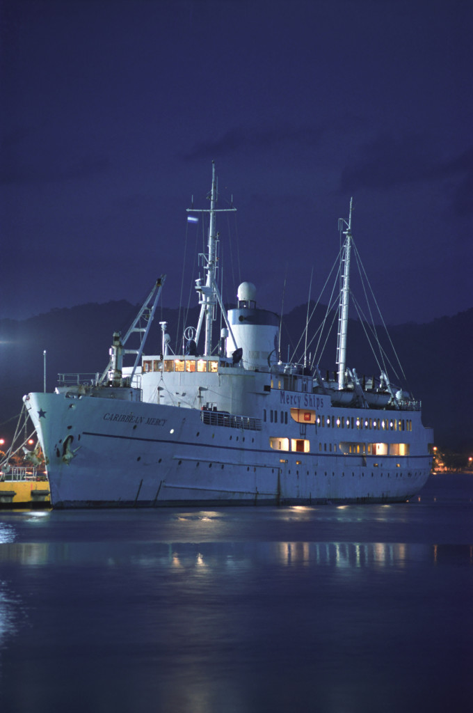 1994 to 2006, the 265-foot Caribbean Mercy focused on the Caribbean basin and South and Central America. Her international crew of 120 volunteers gave spiritual and physical assistance to the poor and needy. The ship was outfitted with a surgical eye unit allowing her to perform hundred of orthopedic, maxillofacial, cataract and strabismus surgeries on board. Additional projects included mobile medical and dental clinics, well-drilling, and relief and development projects. Photo Credit: Paul Tonetti